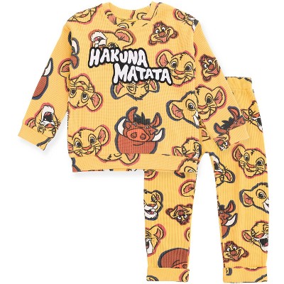 Get ready for a day filled with Disney magic in this cute Disney outfit! This stylish long sleeve shirt and jogger pants set features vibrant and colorful Disney artwork your kid will love to wear! Choose from awesome designs of Simba, Timon, and Pumbaa from The Lion King, Lightning McQueen from Cars, Sulley and Mike Wazowski from Monsters Inc, Lucky, Patch, and the rest of the Dalmatian pups from 101 Dalmatians, Mickey Mouse and his friends Donald Duck, Goofy, and Pluto, or Winnie the Pooh. Made of a soft waffle knit material that keeps your child comfortable all day long, this fashionable Disney clothing set is perfect for adventure and play!