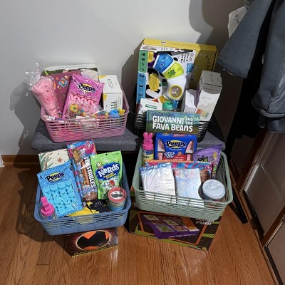 I used this cute pink basket for my Valentine’s Baskets for my little ones and it was perfect. Cute, and enough space to fit larger items alongside some smaller ones. They are really sturdy too so they’ll last a long time!