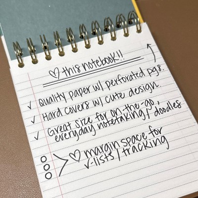 Absolutely love the top-spiral notepads from this company, Witt & Delight! From the cute and aesthetic cover page to the functional, perforated pages and top-spiral design, this fun-sized notebook is great for everyday use and to take on the go. Perfect for daily note-taking and doodles, jotting down thoughts and ideas, creating trackers or checklists, and whatever else you can think of! This notepad is so versatile and comes with 135 pages, making it easy to get rid of unwanted notes or mistakes!