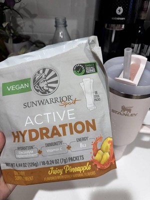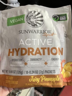 Active Hydration Juicy Pineapple Powder, Sugar Free B12 Elderberry and Electrolytes Water Enhancer, Sunwarrior, 18 Sticks