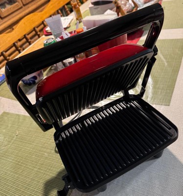 [This review was collected as part of a promotion.] This is a basic panini grill. It fits two sandwiches; it only heats to a preset temp on its own, no information on temperature or adjusting or built in timer; also no forgetting to turn it on just plug in and go! I like its simplicity for quick “i don’t know what to do for dinner” solution, greatly improves the grilled cheese/tuna melts and soup dinner to a gourmet level! Especially with homemade bread!! And with no on/off switch I never have to worry about forgetting to turn it on, just plug in and it’s ready to go by the time I’m done assembling the sandwiches. And if I need things to stay hot I can just unplug, rotate the sandwiches and lower the lid to just above the food. It’s compact and easy to find counter space to use although, I wish that it had feet on the back side to stand vertically and be a bit more accommodating of tight storage next to other occasionally used appliances. Clean up is simple, i do have to run my finger in every crevice with a rash to make sure I get everything, but when fully open there zero risk it will fall over backwards on its own and the locking mechanism keeps it from falling down at any position needed. I feel it’s very safe and as someone who burns myself on everything, I feel like it’ll be a long time before an oops happens with this appliance, and it’ll be my own careless fault when it does happen.