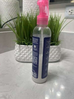 This has a wonderful scent, is not watery, more of a lotion consistency, but does not leave obvious residue or build up when used. I usually spray into my hands and rub onto my ends and up an inch or so with my shoulder length hair.