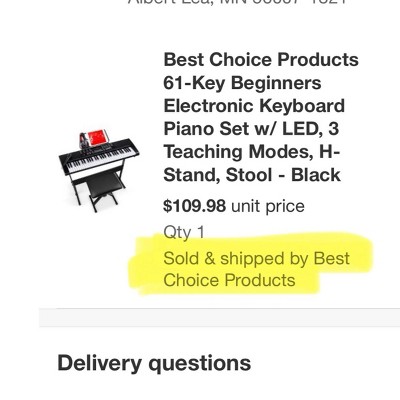 The keyboard arrived timely. I like it, with one exception which would prevent me from purchasing it again, The keyboard has a default volume level which I thought was way too loud, you can turn the volume down, but can not reset default to this volume, It’s challenging to instruct a young child to turn it down every time they turn it on. In hindsight, I should have purchased a simpler keyboard. Lesson learnec