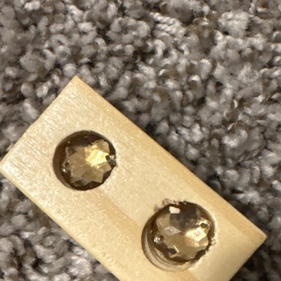 Disappointed it didn’t come in the wooden box and instead flimsy white cardboard. I wish the gems would go all the way through instead of having solid wooden backs. One of the pieces is a random tiny triangle without a gem. Quality is okay. Their blades weren’t sharp enough so it’s not clean. But the lacquer is thick enough to make it smooth. No smell and I’m sensitive to smells. Overall, acceptable and my almost 3yo daughter likes them. They shouldn’t false advertise the wooden box as they’re stored in there.
