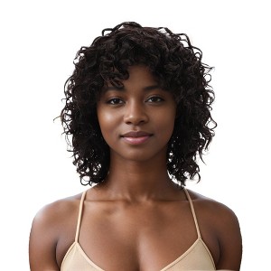Unique Bargains Women's Bangs Curly Hair Wig 150 Real Human Hair 12in Black 1 Pc