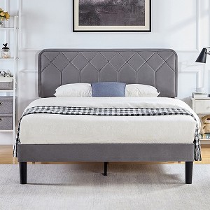 VECELO Bed Frame Premium Upholstered Platform with Height Adjustable Headboard, Bed Frame Drak Gray Queen Bed