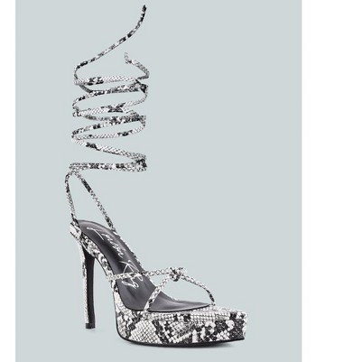 Feel sexy and look sexy with these strappy high heels, pair them with your favourite mini dresses or with midi-length skirts with slits. The straps wrapped around your calves create an illusion of longer and slimmer legs, making you feel sexy and capturing everyone else's attention. Type: Heels Upper: Faux Leather Light Cushion Insoles Outer: Rubber Open Pointed Toe High Stiletto Heel Lace Up Fastening SH2801