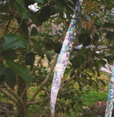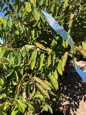 [This review was collected as part of a promotion.] I cut the reflective scare tape into strips and tie them to the branches of my fruit trees. It seems to work because I don’t see birds hanging around anymore. A roll has a lot of reflective tape so it’ll last a long time!