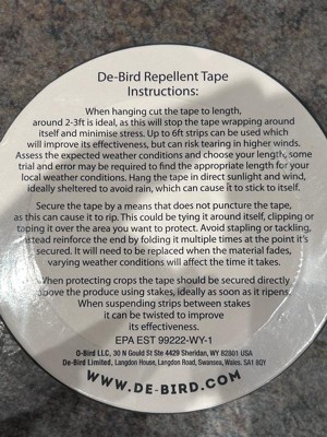 [This review was collected as part of a promotion.] This scare tape by De-Bird is a great option without using anything harmful. It's easy to use, and is effective. We will be using in the garden come springtime. Packaging was nice and simple, low waste. Definitely recommend if birds are an issue 👍🏼