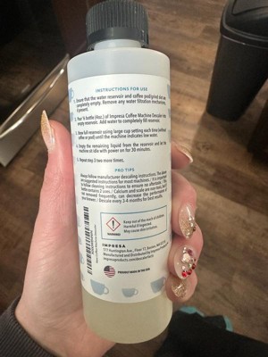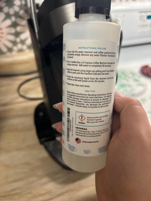 [This review was collected as part of a promotion.] Impresa Descaler was so eady to use, simple instructions on the back of bottle. Mess free cleaning of my coffee maker with no strong odor. Water started off discolored and by the time the cycles were finished it was crystal clear. My coffee tasted so much better as well after the cleaning.