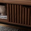 Give a sleek and modern edge to your entertainment unit with our Lylia media stand. The clean-lined and low profile of our media stand is enlivened with the lively textures of walnut veneer. Modern and versatile our media unit charms with a beautiful fluted detail upon the facade. Our functional and stylish media stand provides convenient storage with a cabinet to hide your bulky media equipment and a spacious open shelf to display your DVD collection, books, and other small decorative objects.