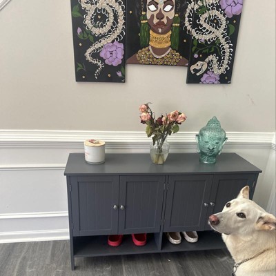 Don’t listen to the negative reviews. This is a great cabinet! It took a little bit to put together, but it’s very heavy duty and has been great for this price point. I have it in the laundry room with my kids shoes in it!