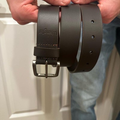 [This review was collected as part of a promotion.] So we ordered a size 34 since that's my husband pants size, but what we didn't realize is that, according to Google, sometimes you are supposed to buy the next size up for a belt (in this case, a 36). Long story short, the belt doesn't fit because this is one of the cases where you're supposed to size up. We've never had this problem before. Aside from that, the belt doesn't seem like a high quality item. It's the type of "leather" that starts to flake right away, unfortunately. Additionally, the color is not true to the listing. We ordered the dark brown, but it's so dark I thought we got sent the black by mistake. I wouldn't recommend this product. I received an incentive to write this review.