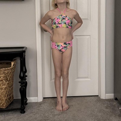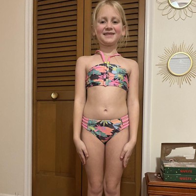 Girls' A Trip to Paradise Floral Printed Bikini Set - art class™ M: UPF 50+, Recycled Polyester, Botanical Pattern
