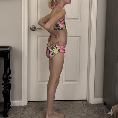 This is a great option for your sporty girl who also likes to wear two piece swimsuits. My daughter has broad shoulders and a wide rib cage and she really liked how this top, a size 14, which is a size up from her normal size of 12. The bottom was a little big on her but that is normal as her bottom is small compared to her top. It fit well enough to stay on even when wet so this will work. I really loved the bright summery print of this fabric. I received an incentive to write this review.