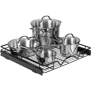 The HOLDN' STORAGE Pull Out Cabinet Organizer is a durable and stylish solution for your kitchen storage needs, featuring heavy-duty metal construction with an ultra-smooth sliding system. Measuring 20”W x 21”D x 3.15" H, it requires a cabinet opening of at least 21.25” and includes a ball-bearing system for easy, full-extension access. The organizer’s robust gauge wire design ensures it can handle a substantial amount of cookware, while its sleek black finish adds a touch of elegance to any cabinet.
