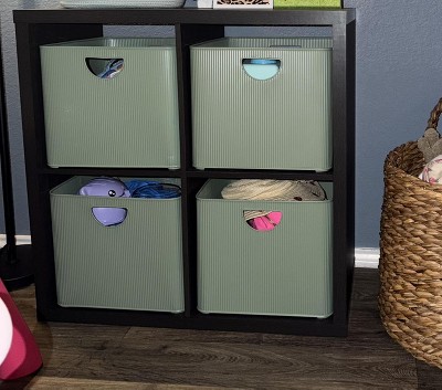 Love these for hiding toys in my living room! I feel like they look better than the fabric bins and are a great way to keep things organized. Since they are metal, they are a bit heavy once filled and I have found it kind of tricky to pull them out of the shelf, but that is fine with me because my toddler can’t dump them out on her own lol.