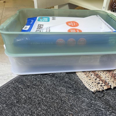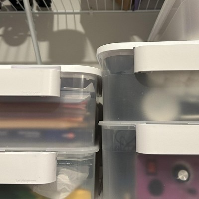 Click in Place 6.7qt Clear Shallow Plastic Storage Bin with White Latch for Home and Office Organization - Brightroom™