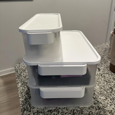 These organizer bins are always handy to have around. It helps corral all the loose items I have in my pantry. The bin is the perfect size for my shelves. I think you can get a lid for it too. They feel a little flimsy though.