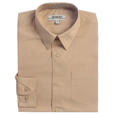 Gioberti Boy's Short Sleeve Solid Dress Shirt, Khaki, 7