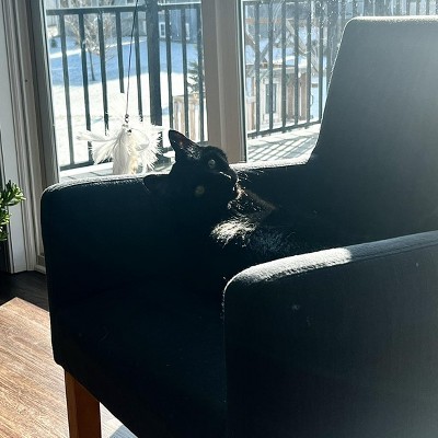 Our cat loves this, easy to hang and his favorite thing to do is sit in a chair and fight it!
