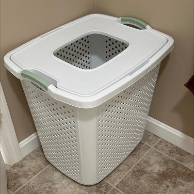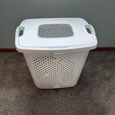 Loved how big it was. I live on a 3rd floor apartment and needed something to hold more laundry. However the first one I got came without the lid. Then the first time I use it. One of the green handles popped off and continued to do so. Tried to use the other handles but one of those split in half. Just wish it was sturdier for the price I paid for.