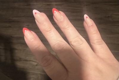 I loved the design on these. Perfect for valentines day. Unfortunately they dont stay on. I had 2 pop off at dinner the day i put them on, two more the next day. I followed the instructions exactly. Ill try a different brand of glue, but I probably wont repurchase.