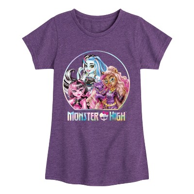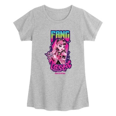 Monster High - Draculara - Youth Girls Fitted Short Sleeve T-Shirt - Freaky meets fabulous in Monster High graphic apparel starring ghouls like Draculaura, Frankie Stein, and Clawdeen Wolf. These fierce, fashion-forward designs celebrate self-expression, individuality, and monster style.