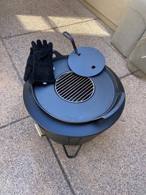 Tiki Fire Pit Cast Iron Grill Top Griddle Black