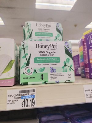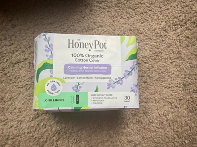 Honey Pot 100% Organic Cotton Cover Calming Herbal Infusion Long Liners - 30 ct