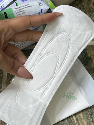 [This review was collected as part of a promotion.] Ok listen. Perimenopausal periods are no joke. I never know when I’m going to need a little extra security on heavy flow days and these have been GREAT for added night time protection. The are very long (see picture next to another well known brand liner on the left), so I know I’m covered no matter how restlessly I sleep. They are also wide—which is why I wouldn’t choose to wear these during the day if I was walking around a lot. Not necessarily uncomfortable but not great either. As far as the scented oils—I find it unnecessary. I don’t really want essential oils in such a delicate area(although I didn’t experience irritation), and I’m not a huge lavender fan—but it wasn’t so strong that it would be a dealbreaker. I would consider buying an unscented version of these to have on hand.