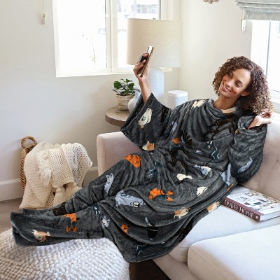 Wearable Sleeved Blanket to be worn backward: Designed in the U.S.A, Catalonia Deluxe Micro Fleece Blanket with arms and built-in foot pockets to keep feet warm. Sleeves cover shoulders, arms and keep hands free, will not slip down. Opening in the back.