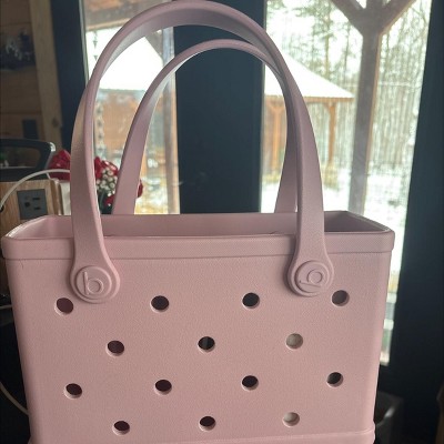I got the Bitty Bag in Beach Hydrangea, it's a nice lavender (light purple-pink). The size is what I wanted for tablet and water bottle and a few other things. Feel it's over-priced for what it is. Would prefer the straps to be at least another inch or so longer for carrying over the shoulder. The insert seems a little flimsy, we'll see how it holds up. Disappointed that the holes are bigger than the Crocs bags, so the Crocs Jibbitz come out too easily. So far Bogg doesn't have that great of a selection of bits to choose from and are over-priced.