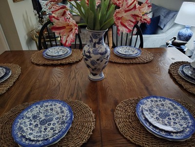 The design and quality of this woven charger are top notch. I use it as decoration on my kitchen counter to put all of my dog’s treats and bones on top of. The design is classic and neutral and can be used year round. I plan on purchasing more for the dining room.