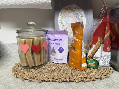 A perfect addition to any counter top or table setting. My cats found it to also be the perfect bed! The material is not super scratchy and the sizing is perfect for a center piece. The color can match with just about any kitchen and dining room too!