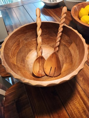 Large Carved Edge Wood Bowl Mid Tone - Heart & Hand with Magnolia was just the right size to serve my family and guests salad. The bowl was visually appealing and great to display when not in use. It was easy to clean too.