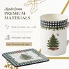 Spode Christmas Tree 5-Piece Mug & Tin Set - Fine China Mugs & Cork Coasters, Holiday Beverage Essentials, Festive Gift, Checkered