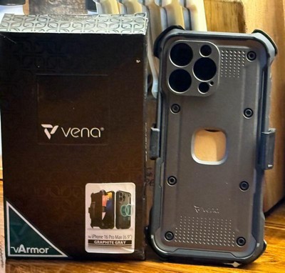 Vena vArmor For Apple iPhone 16 Pro Max Case Magsafe, Rugged Case with Belt Clip Holster [Military Grade Drop Protection], Heavy Duty Kickstand, Gray