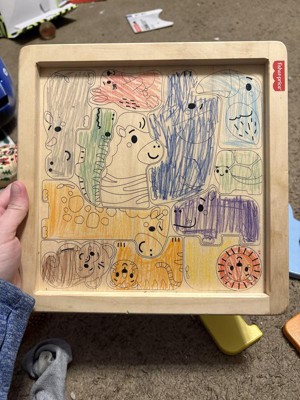 [This review was collected as part of a promotion.] The animal puzzle is so well made. The puzzle pieces are heavy duty and the colors are vibrant. Very easy for little hands to manipulate but also a challenge as the pieces slide in side by side instead of being slid into separate slots. This is a must buy for any child who loves puzzles.