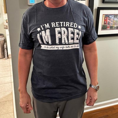 Mens Im Retired Im Free to Do What My Wife Tells Me T shirt Funny Retirement Tee - Crazy Dog Men's T Shirt For the Office - 1 of 4