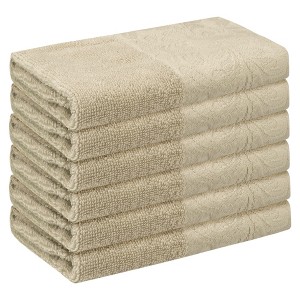 Unique Bargains Cotton Printed Absorbent Comfort Face Towel 6 Pcs Khaki 13" x 13"