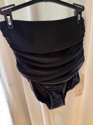 Trimshaper Women's High Waist Shirred Brief Plus Swim Bottom - Black
