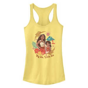 Junior's Moana 2 Big Sis Little Sis Portrait Racerback Tank Top - Banana - Large