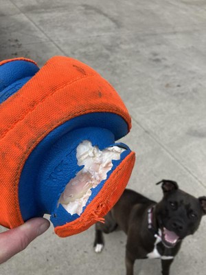 This lasted all of 20 minutes with my Pittie mix. Do not buy of you have a heavy chewer or it will be an expensive lesson. I expected better from a Chuck It toy.