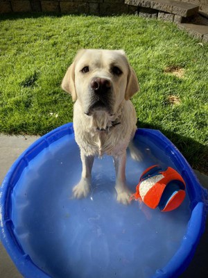 We bought this ball a year ago and its our labs absolutely favourite. Provides loads of backyard fun. Best dog toy purchase ever.