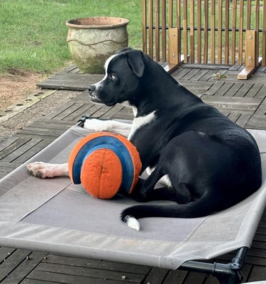 Awesome kick ball, but not if your dog is a chewer. I’m hoping Petmate designs another version of this ball in rubber. I’d definitely buy it!