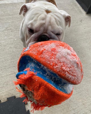 Our bull dog loves this ball. Likes to chase it through the snow, latch on to it, and bring it back. Unfortunately it just didn't last as long as we hoped it would of.