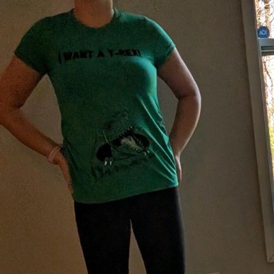 Yes I am pregnant! Do I want a boy or a girl? Hmmm, I'm actually kind of hoping it will be a T-rex. Rwar! Here at Crazy Dog T Shirts, we want to know what your favorite dinosaur is! From the fearsome Tyrannosaurus Rex to the gentle Brachiosaurus, we have a dino tee for you! Cool Dinosaur patterns, funny velociraptor jokes, and fun flip shirts that turns any wearer into a T. Rex! At Crazy Dog T Shirts, we know humor doesn’t end with motherhood, that’s why we combine top quality maternity clothing with funny jokes. Our maternity shirts are soft, comfortable and made with 100% pre-shrunk poly-cotton blends. Crazy Dog T Shirt is family owned so we like to stay close and screen-print all our t-shirts right here in the U.S.A with state of the art ink and equipment so you can trust your maternity tee is high quality and the design won’t fade over time. Crazy Dog apparel pairs well with your favorite pair of jeans, shorts, or comfy sweatpants. Our graphic novelty tees feature the finest jokes, sarcastic quotes, and movie references guaranteed to get anyone on your gift giving list to laugh! Give the perfect baby shower, Mother’s Day, Pregnancy Announcement gift. Show Off Your Baby Bump! Our quarter length T Shirts make for awesome baby announcement photos and made for moms- to-be who don’t want to sacrifice style over function!