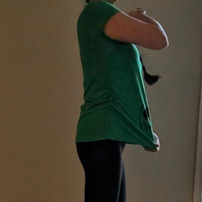 I absolutely love this shirt. I ordered the medium which is my typical size and doing that it runs true to size as it fits perfectly. There is plenty of room for a growing belly. It is very comfortable to wear. I wish that this came in multiple colors. I would love it in a black or dark blue. It's a great shirt. I recommend it
