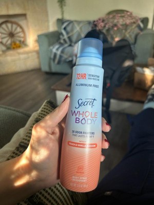 Thank you for your amazing review of Secret Aluminum Free Whole Body Spray Peach & Vanilla🍑
